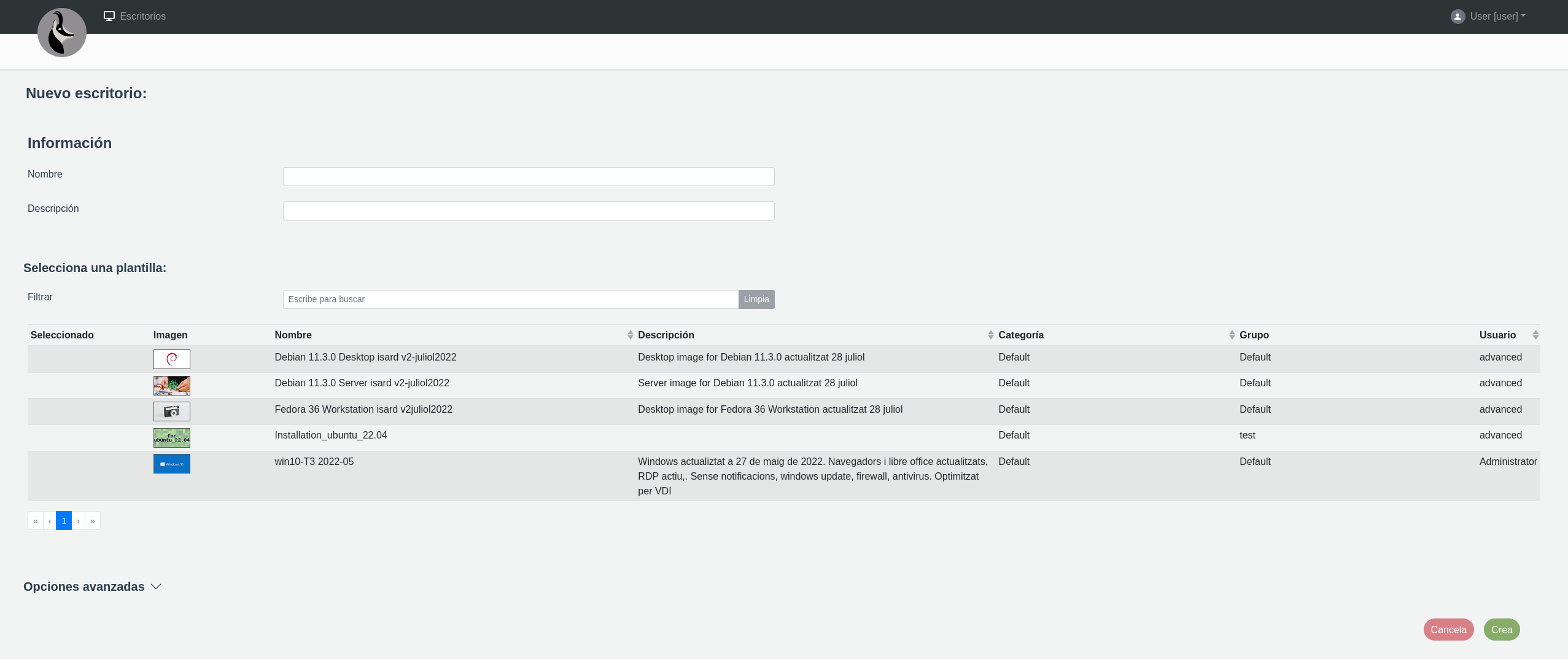 Para crear un escritorio se pulsa el botón