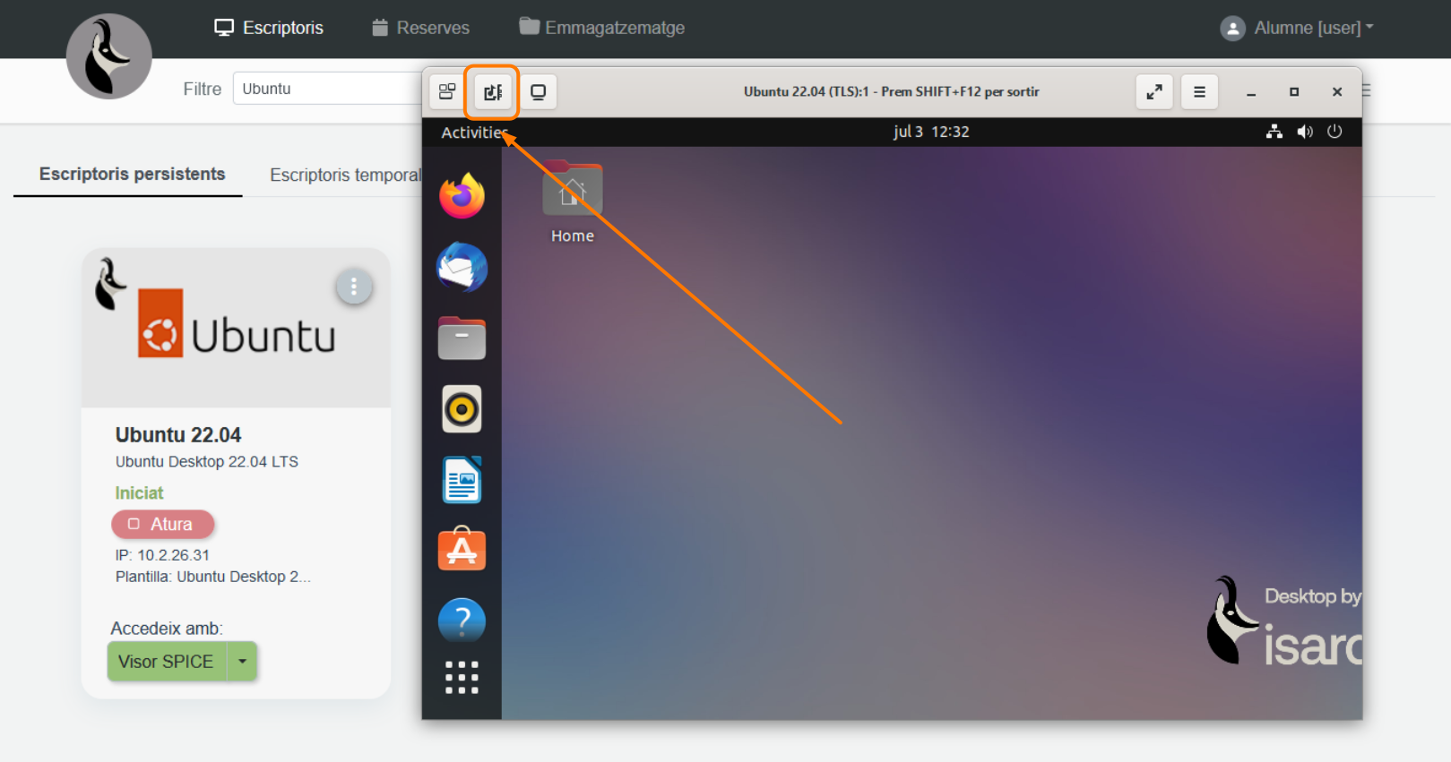 De tener un escritorio con un usuario personalizado, se deben modificar estas credenciales en el escritorio desde la interfaz de Isard.