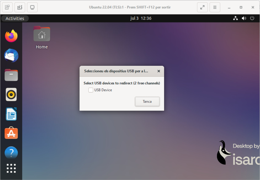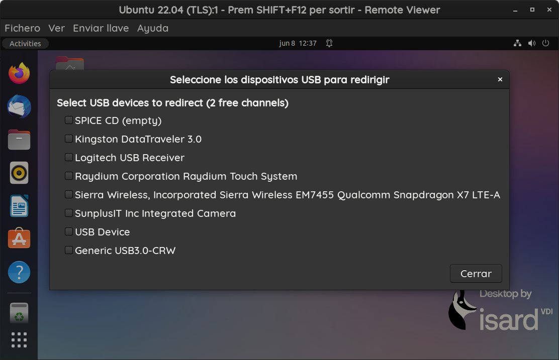 Si se tiene instalado virt-viewer 11, hay que realizar uno de estos pasos para activar el escaneo de USB: