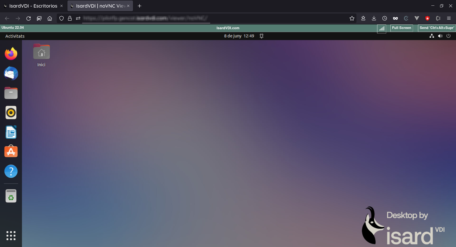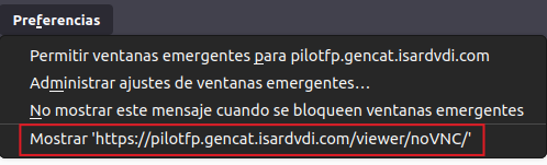De la misma forma que con el visor noVNC para el navegador, se abrirá el visor en una pestaña nueva en el navegador, con acceso directo al escritorio.