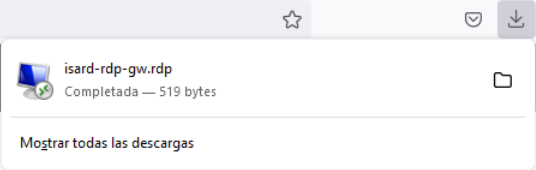 Al seleccionar los visores RPD o RDP VPN, se descarga un fichero con extensión .rdp, el cual contiene la información para poder conectarse con el escritorio: