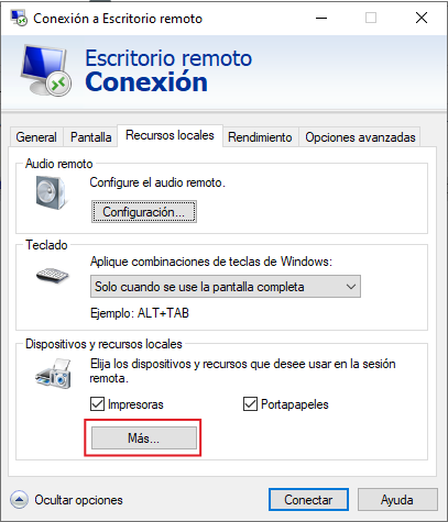 - No podemos redirigir al escritorio virtual dispositivos locales conectados por USB.