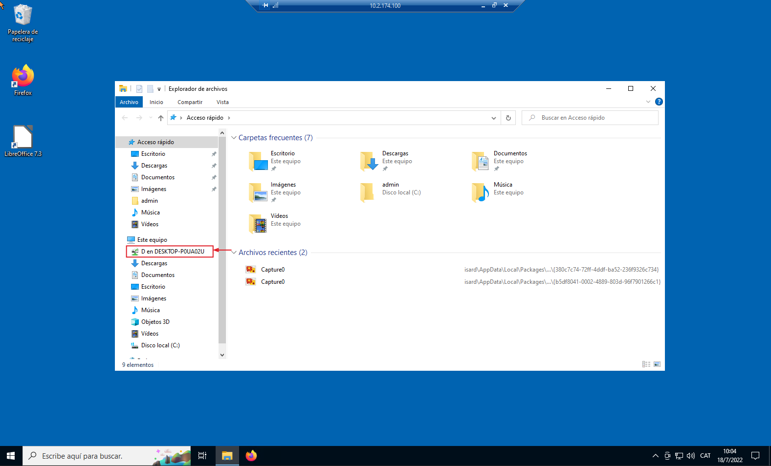 Al acceder al visor RDP, aparece el dispositivo en el listado de discos del escritorio.