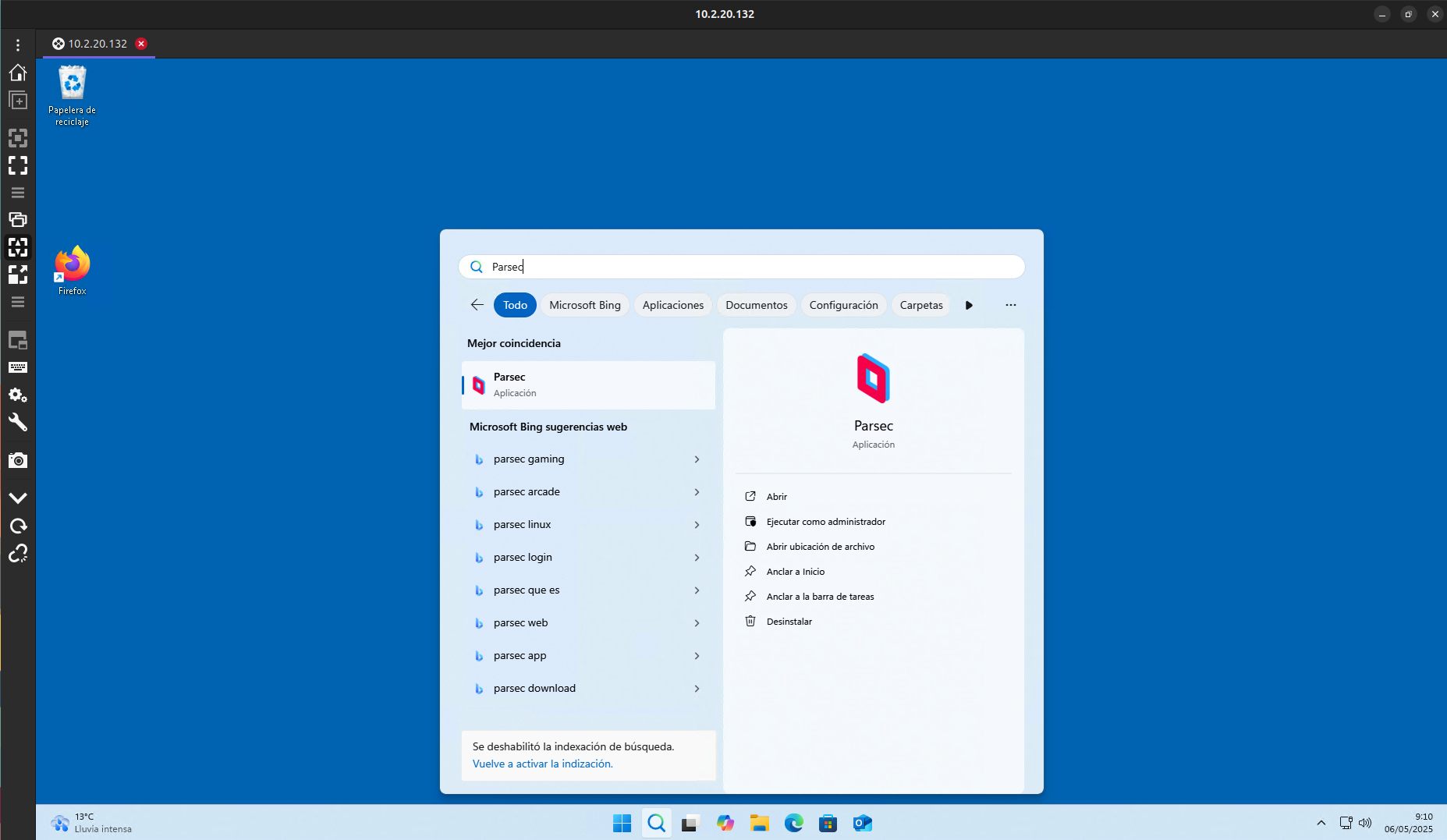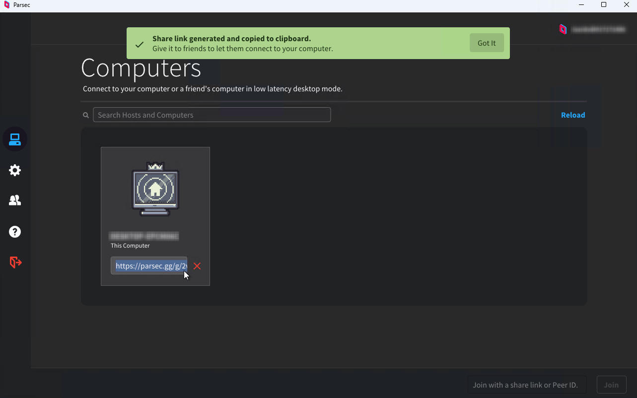 Una vez instalado Parsec y registrado el usuario que hemos creado:
