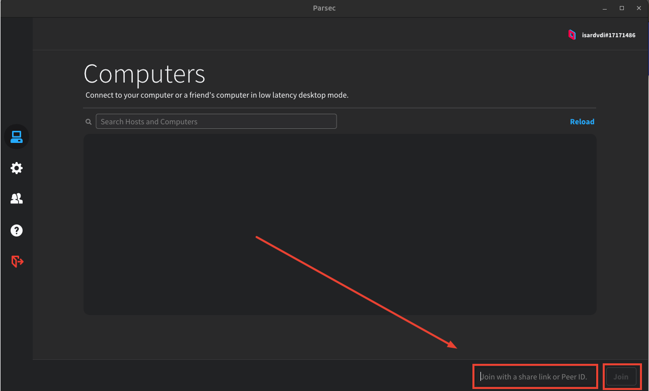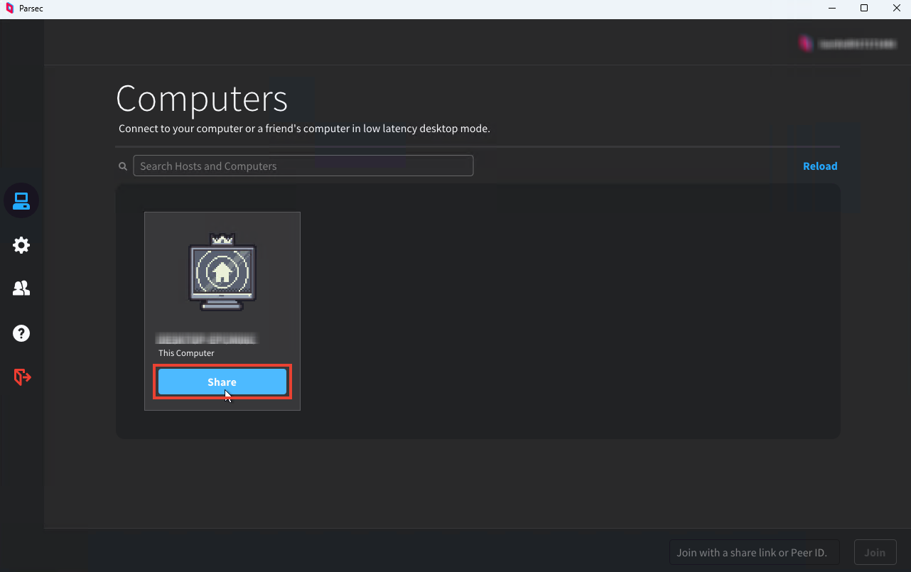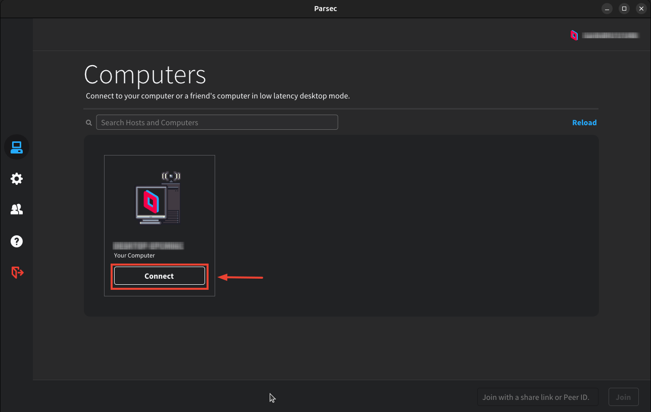 En el dispositivo desde el que se quiere retransmitir el contenido del escritorio virtual, descargamos Parsec igual que en el escritorio virtual e iniciamos sesión con la misma cuenta.