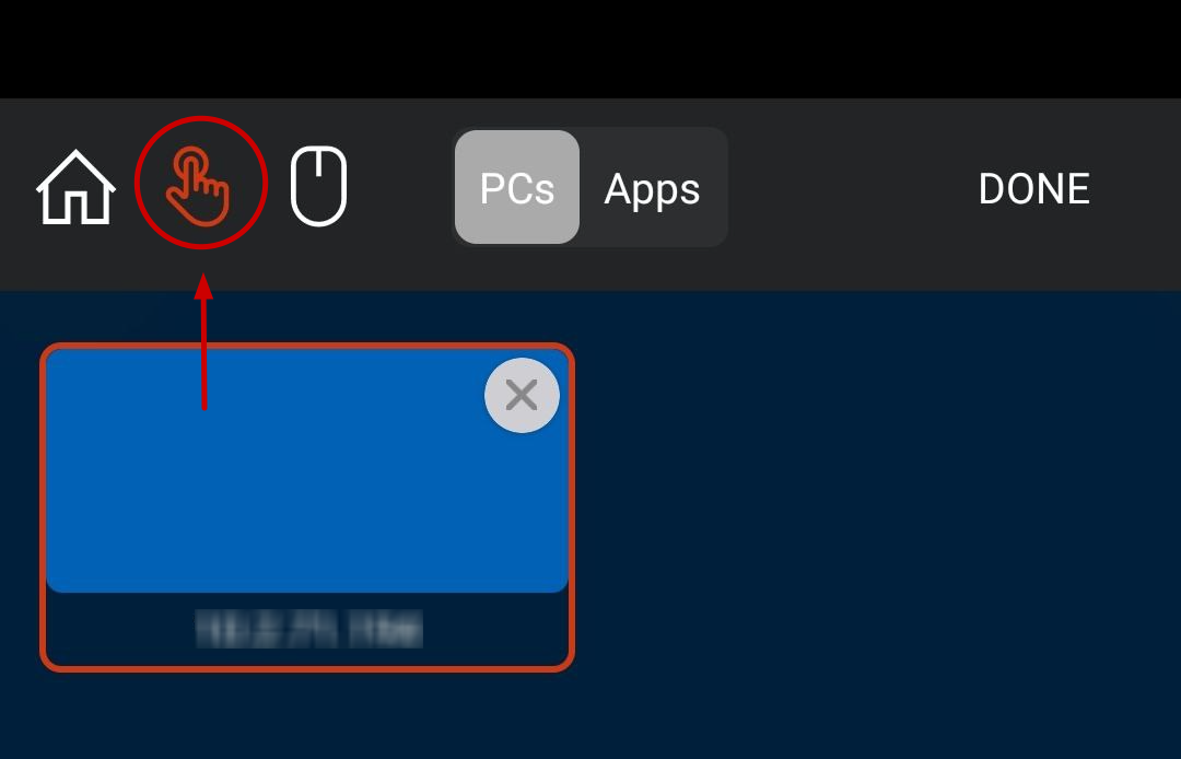 Para escoger la forma de manipulación del visor, pudiendo escoger entre ratón (Mouse) o táctilmente, hemos de presionar el icono que aparece marcado en la imagen: