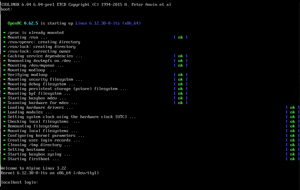 The version used in this guide is: alpine-standard-3.22.1-x86_64.iso (the latest at the time of writing this documentation: Released Jul 15, 2025)