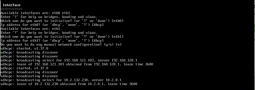 - To access via SSH, turn on the eth1 interface and set it to get IP via DHCP: