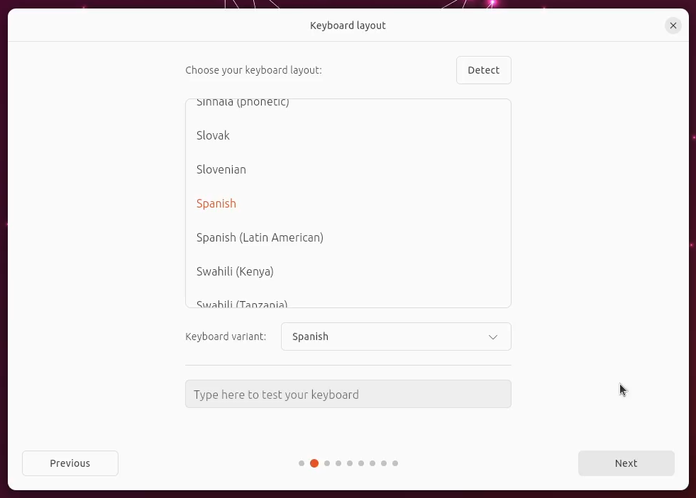 Language and keyboard layout selection