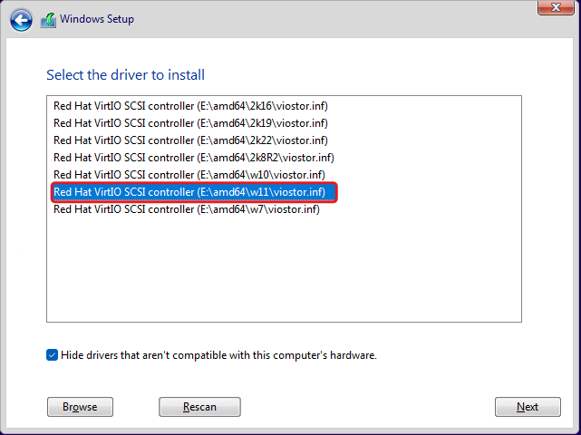 - Template: Microsoft windows 10 with Virtio devices UEFI