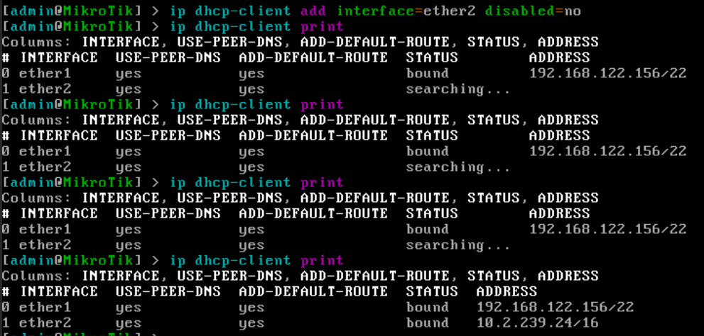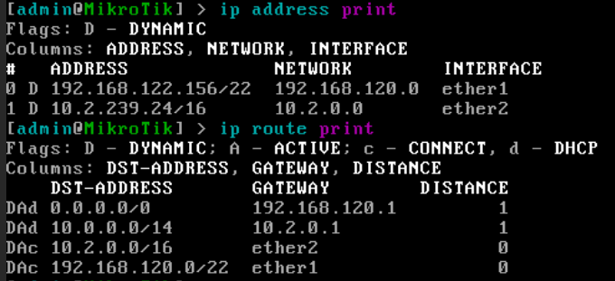 ether1: inet (internet network Default)