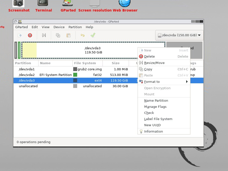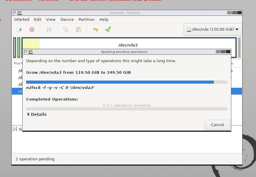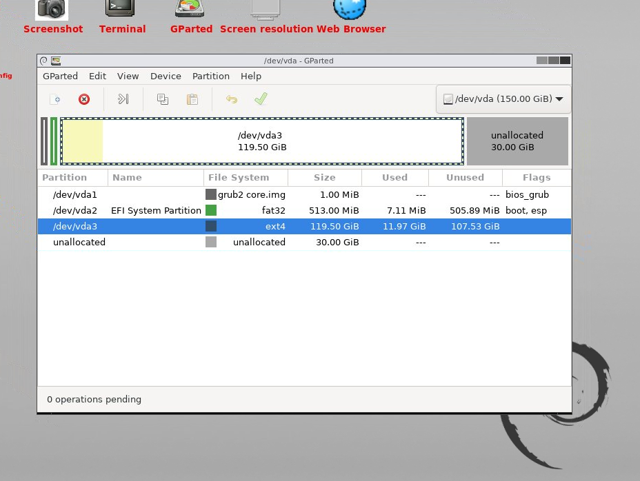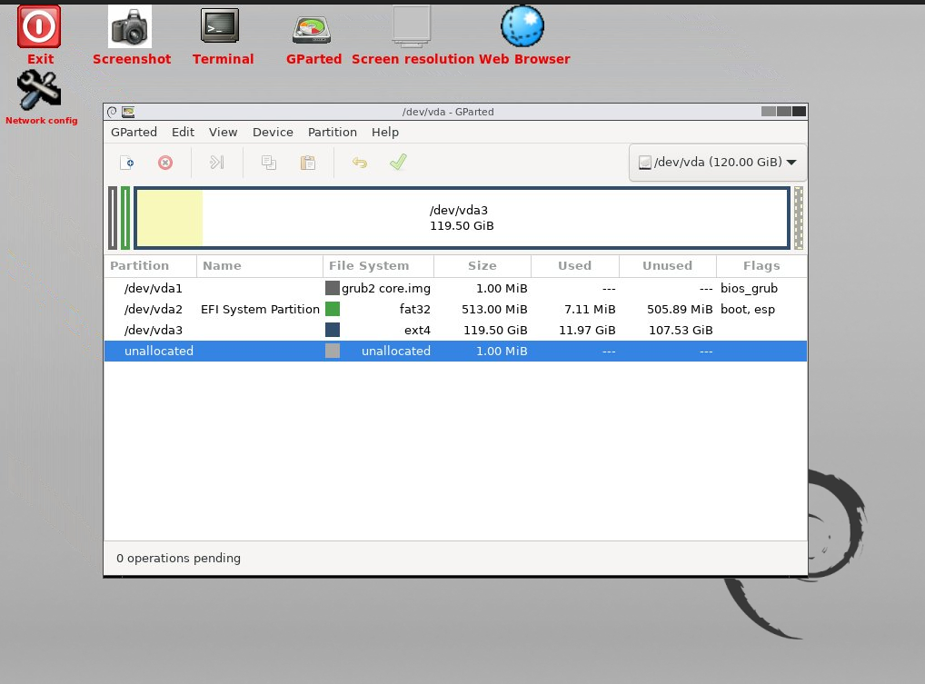 Click on the close button and the operation is done. You can now close GParted and restart the desktop normally. To do this we will have to edit the desktop again with the following parameters and hit submit: