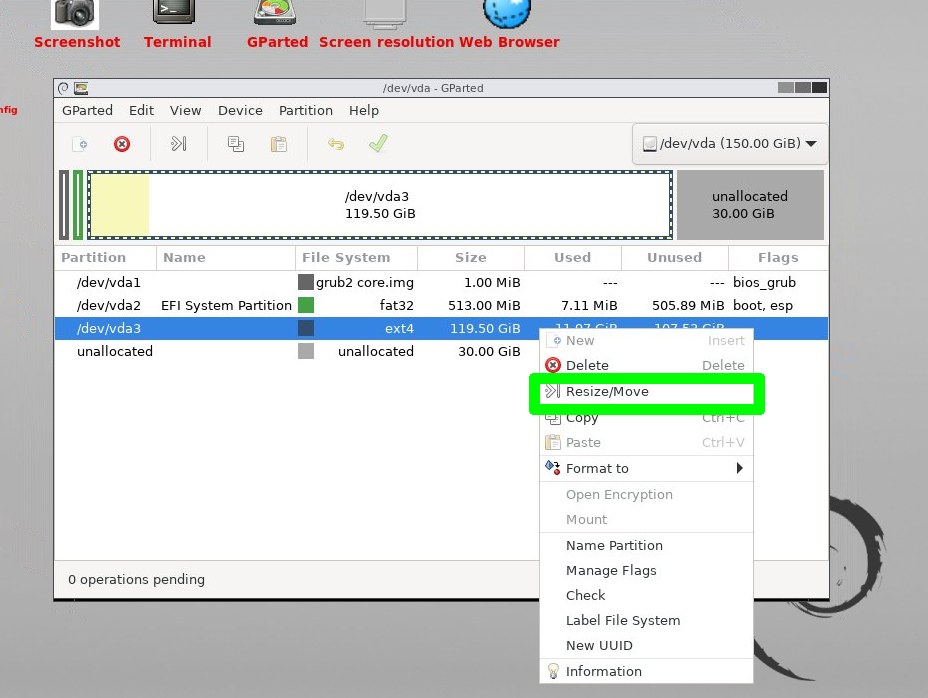 Resizing a partition¶