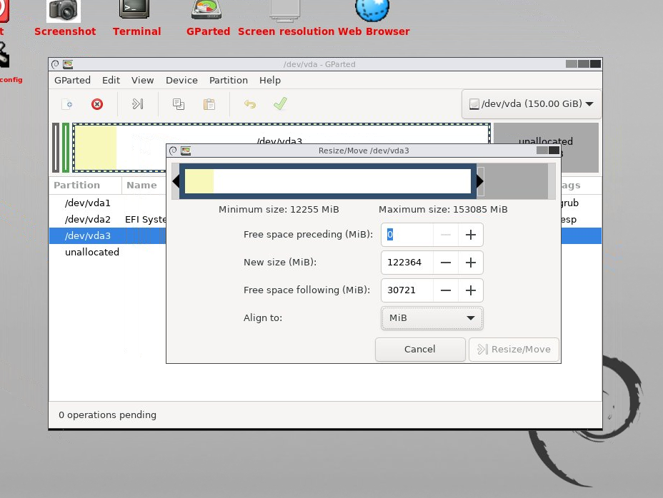 Maximum and minimum size: This is the maximum and minimum size to which the partition can be reduced or enlarged. It is important to keep these in mind when determining partition modification parameters.