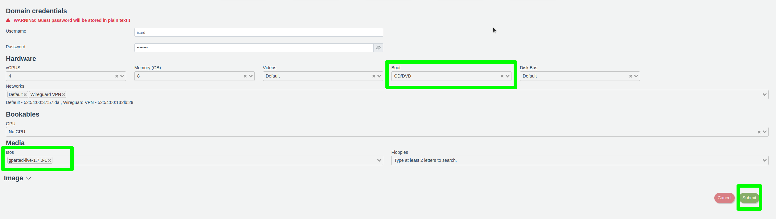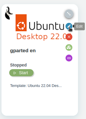 With the ISO already in Isard, we will go to our desktop and by clicking on the edit button, we will add the GParted ISO.