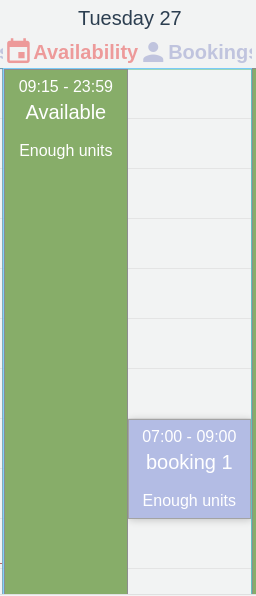Once the booking is made, it will appear in the right column for each day.
