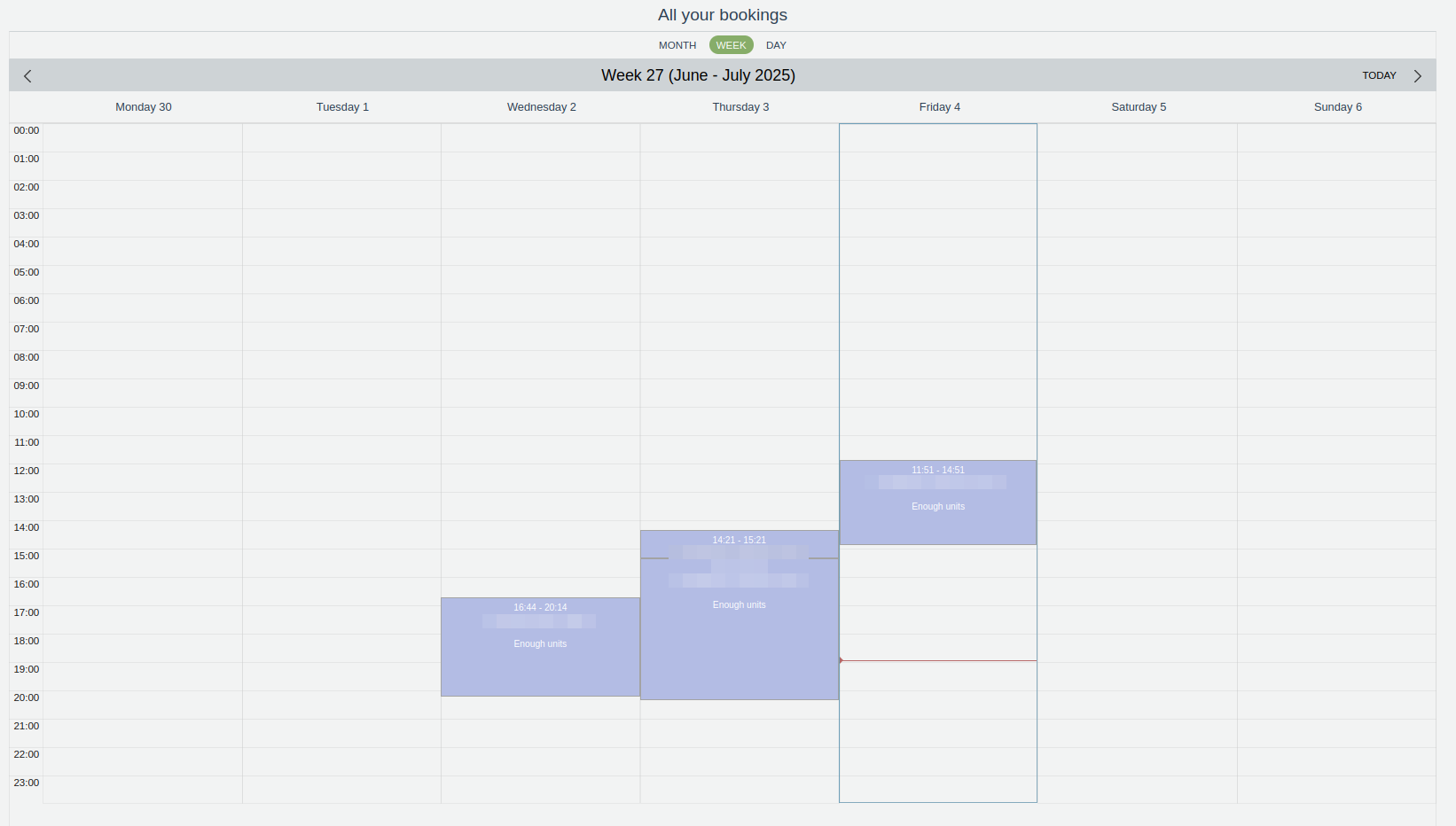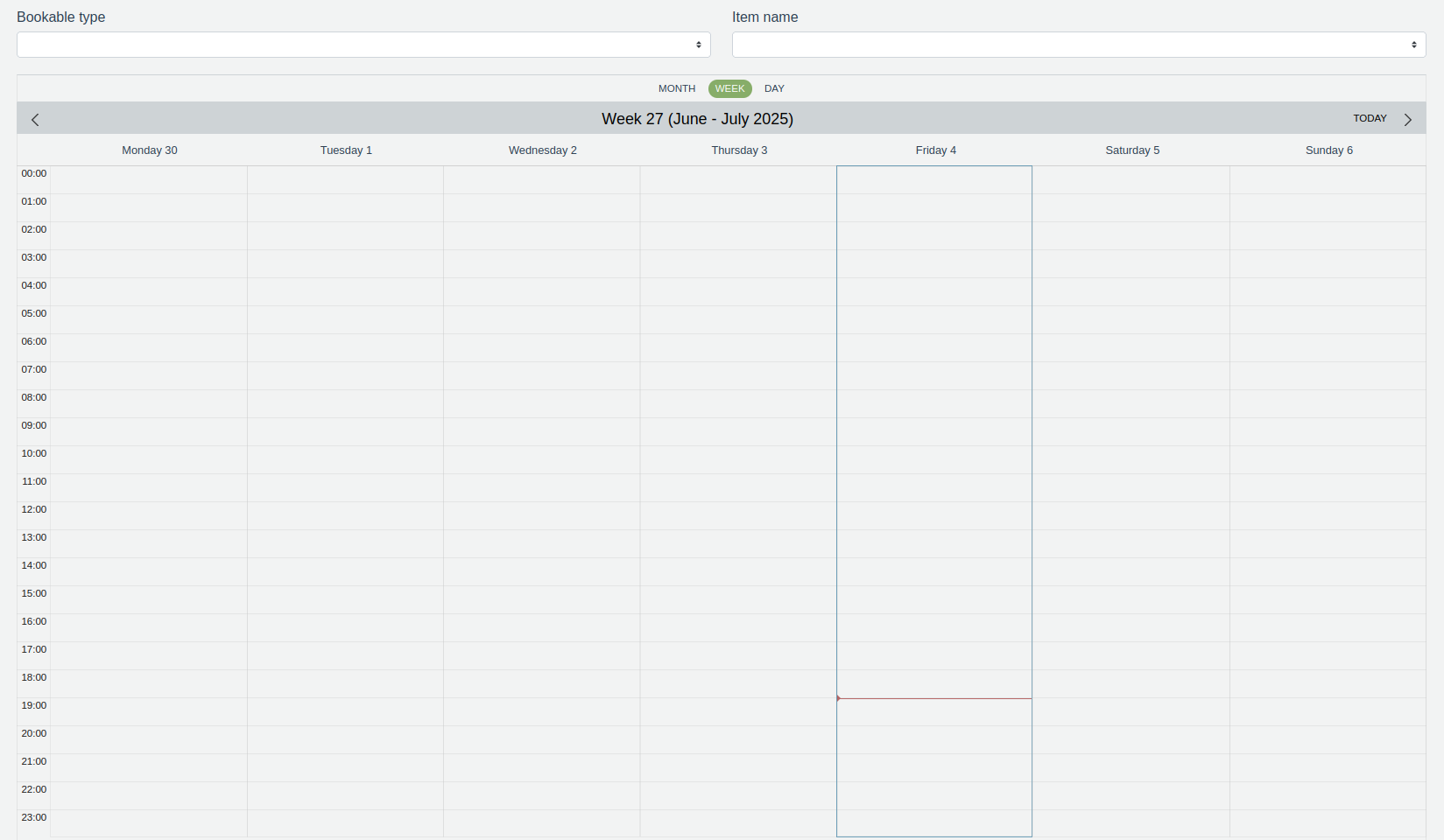 In the figure, it can be seen that there is availability during the week and no bookings have been made.
