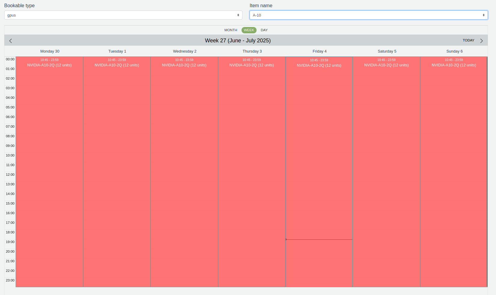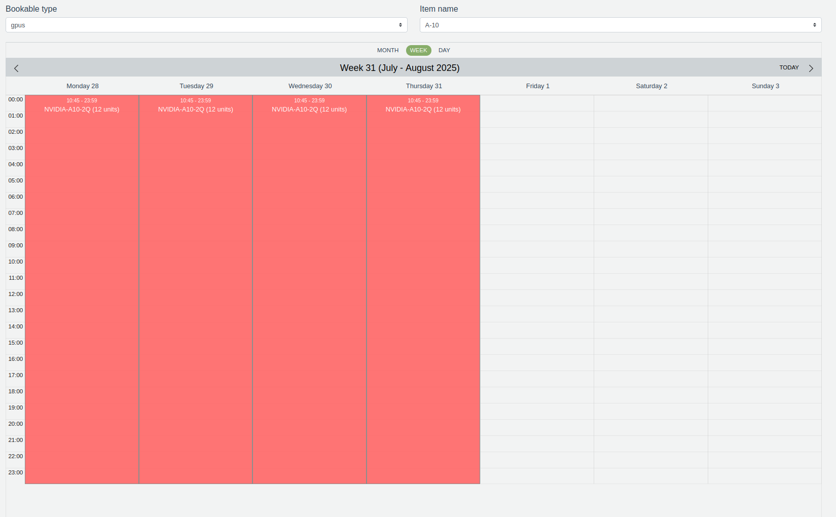 The schedule for the selected GPU will now be displayed, showing its current availability and any existing bookings.