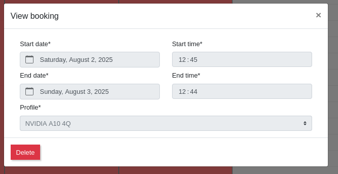 In the case of vGPUs, they are expensive resources (there is the cost of the card and the cost of licensing), and to access these resources, a bookings system has been established with the following characteristics: