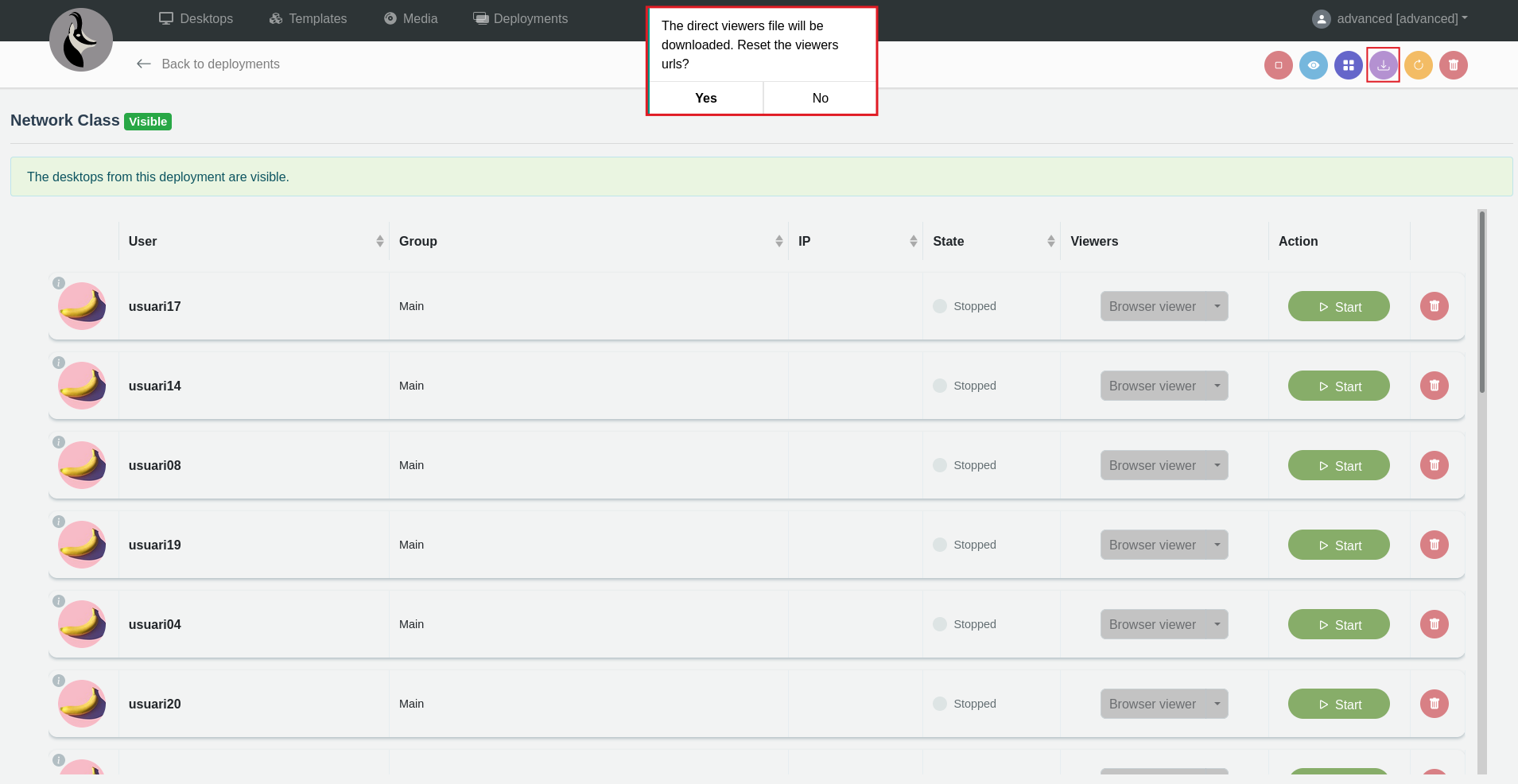This file is used to view the list of users in the deployment and their respective desktop URLs. Follow the steps below to download this file: