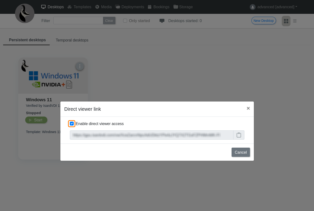 This is used to share a desktop through a direct link to it, without the need for the user to be registered on the platform.