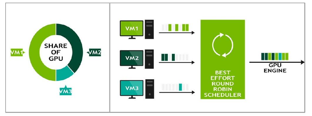 The number of physical GPUs a board has depends on the board. Each physical GPU can support several different types of virtual GPU (vGPU). vGPU types have a fixed number of frame buffers, a number of supported display heads, and maximum resolutions. They are grouped into different profiles based on the different workload classes they are optimized for. Each profile is identified by the last letter of the vGPU type name. For more information.