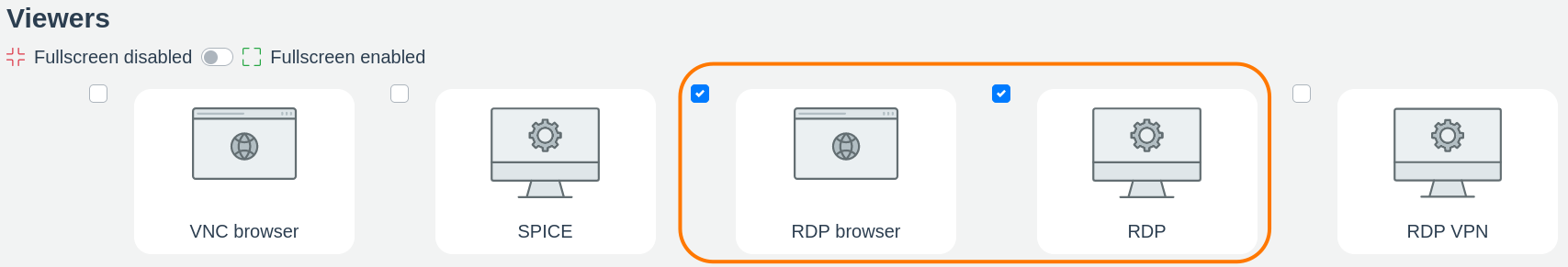 Create/edit desktop or create/edit a deployment with the previous points on this manual done, move to Viewers section and make sure to check the boxes with RDP viewers.