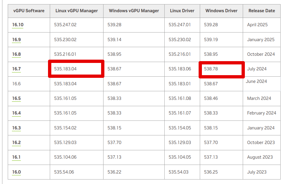 If the server pointed where the virtual desktop to be configured has any of these graphics cards, the host drivers must be updated to these minimum versions. Otherwise, there may be compatibility problems and/or in the installation process of the client drivers on the desktop:
