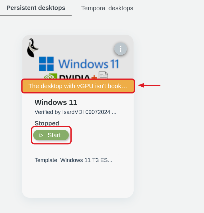 In order to book and start a desktop with a gpu profile, the administrator must have previously scheduled it