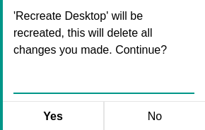 This action will reset the desktop to its initial state, removing all changes made to it.