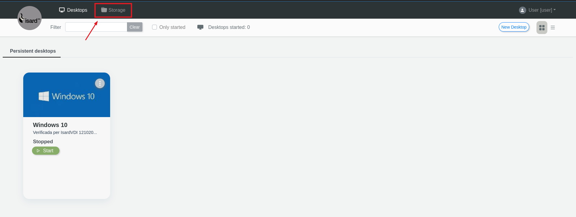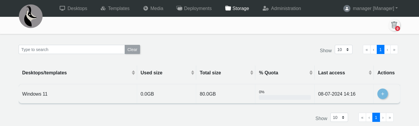 From the home page you can go to the "Storage" section to get a little more information about the desktops that have been created like the consumption of the desktops and templates.