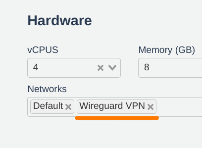 Firstly, the Wireguard VPN network interface must be active on all the desktops that need to be visible in the VPN tunnel, either by editing their "Hardware" or creating them directly with that network interface.
